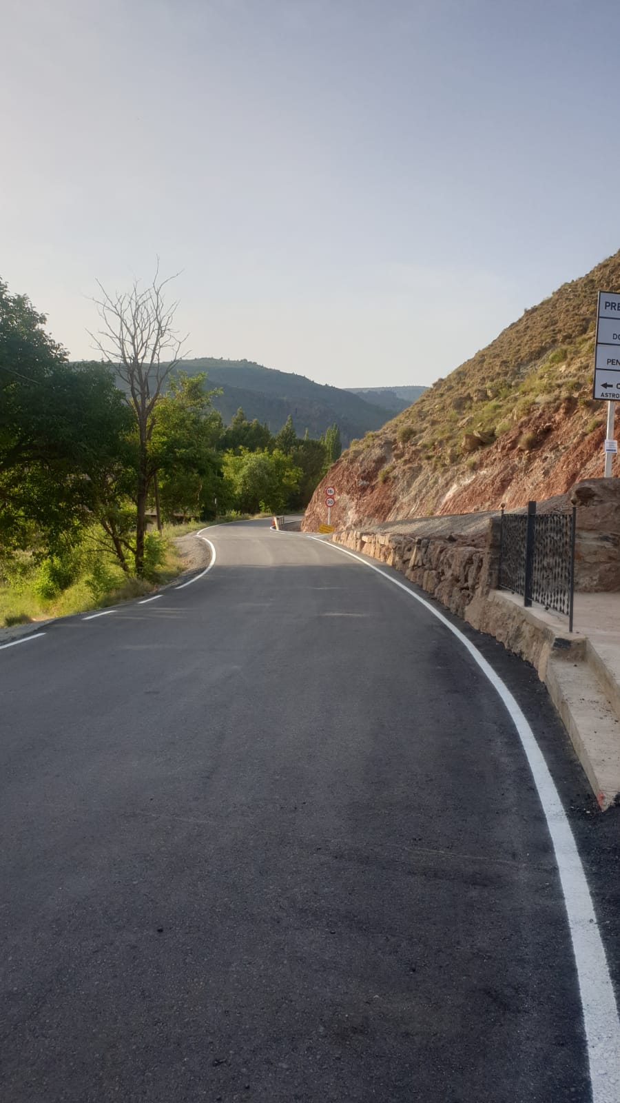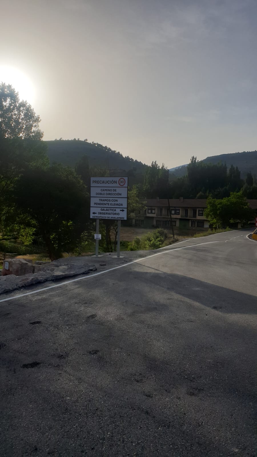 Instalación de señales de velocidad, estrechamiento de calzada, instalación de un cartel informativo general, colocación de varios tramos de barrera de seguridad de madera y el pintado de las marcas viales en la renovación del firme en el acceso; en el centro astrofísico ubicado en el Pico del buitre en el TM de Arcos de las Salinas.