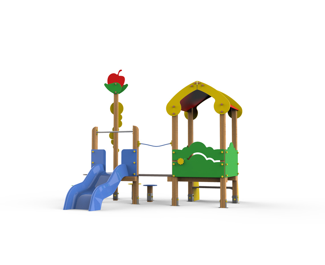 Es el refugio preferido de los niños ya que les incita a desarrollar su imaginación y a comunicar se con los demás. Podrán acceder a la casita mediante una escalera de peldaños, de ahí podrán deslizar se por el tobogán o seguir el camino por la pasarela a la que llegarán a otra torre y podrán bajar mediante unos divertidos escalones. Se compone de divertidos paneles interactivos.